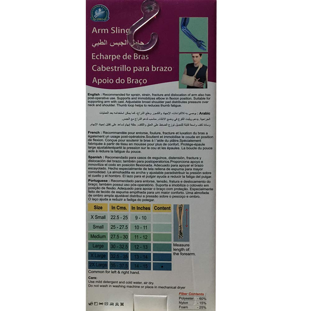 djustable broad shoulder pad reduces neck and shoulder pressure Thumb loop inside for desired hand rest / Made from foam piled fabric to provide extra comfort Recommended after surgical treatment for sprains and strains, fractures and dislocation Suppo